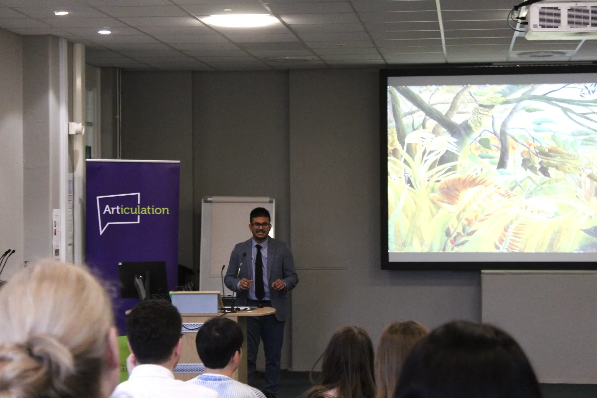 This year, we had seven participants: our highest number yet! Our heats ran on Thursday lunchtime in the Board Room. Students faced the discerning panel of Mr Lissimore and Mr Coop and benefitted from a supportive audience of staff and students. In our first heat, we heard presentations from 3 students in Year 12: Houting, who spoke on “Starry Night” by Van Gogh; Pavan, who spoke on “Surprised!” by Henri Rousseau, and Arnav, who spoke on “Dark Matter” by Cornelia Parker. While Pavan was judged the winner of this heat for his sensitive and analytical presentation, this was a really difficult decision as all three speeches were fantastic.